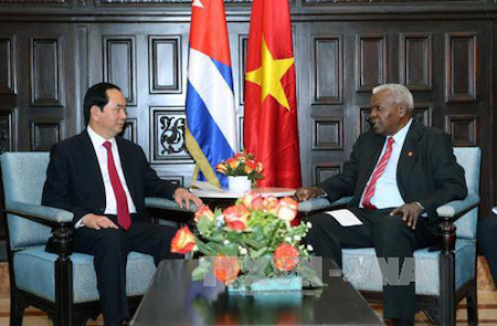 ![]() El presidente Tran Dai Quang se reunió el 16 de noviembre con el jefe de la Asamblea Nacional del Poder Popular (Parlamento) de Cuba, Esteban Lazo en Capitolio |