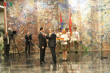 ![]() El presidente anfitrión entregó el Orden José Martí a su homólogo vietnamita en el Palacio de Revolución |