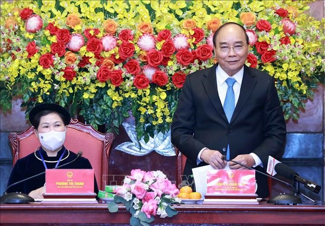 El presidente Nguyen Xuan Phuc en el encuentro. (Foto: VNA) |