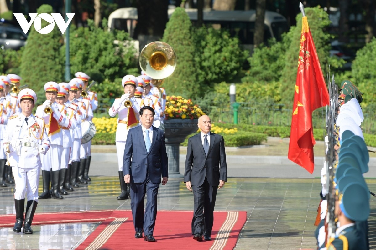 El presidente Luong Cuong afirmó: “Esta visita a Vietnam del rey Norodom Sihamoni será una gran fuente de estímulo para el desarrollo de los vínculos binacionales y consolidará la buena vecindad Vietnam-Camboya, en beneficio de las dos naciones y la felicidad de sus pueblos. Deseo que las relaciones entre ambo países sean siempre de “buena vecindad, amistad tradicional, cooperación integral y duradera sostenibilidad”. Deseo que su Majestad el Rey goce de buena salud y continúe liderando al pueblo camboyano hacia la consecución de logros aún mayores en la causa de la construcción y el desarrollo nacional”.
