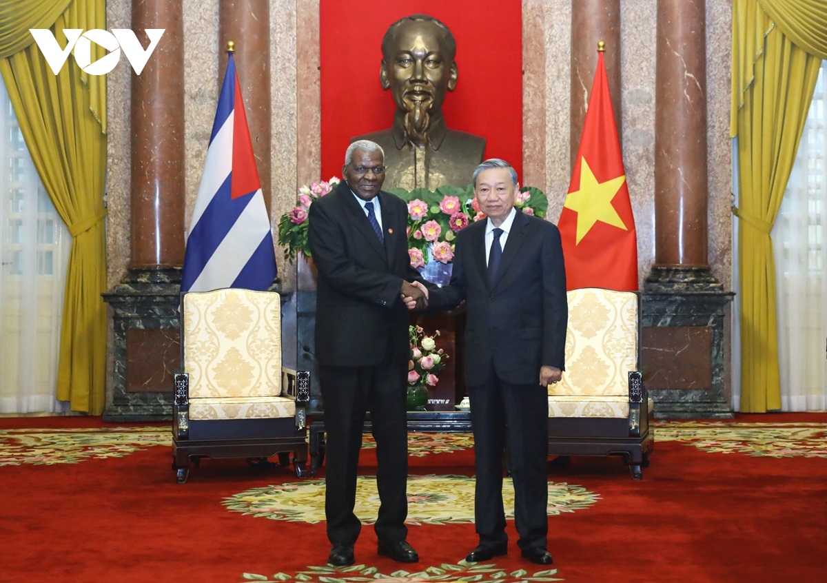 El presidente de Vietnam To Lam (d.) y el titular de la Asamblea Nacional del Poder Popular de Cuba, Esteban Lazo Hernández. |