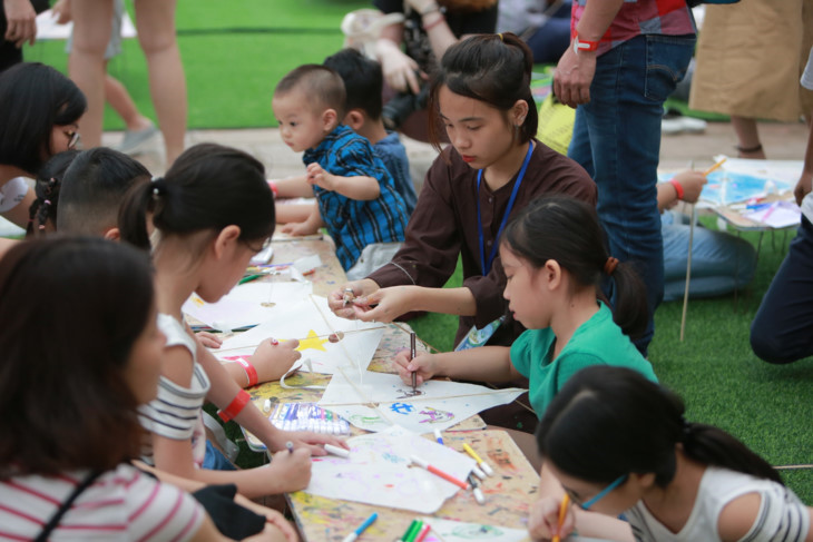 A los niños se les enseña a dibujar y hacer cometas. |