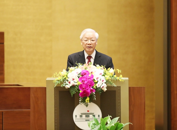 El secretario general del PCV, Nguyen Phu Trong, habla en la conferencia (Foto: qdnd.vn) |