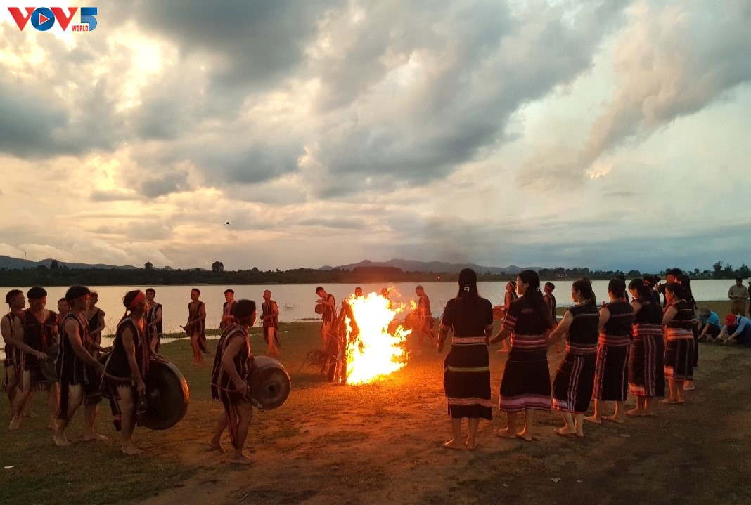 Habitantes de Ia Mo Nong ofreciendo una demostración de la danza y música de los gongs. (Foto: VOV5) |