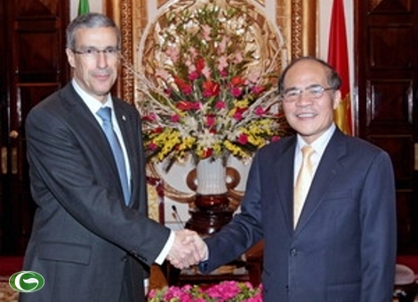 El presidente del Parlamento vietnamita, Nguyen Sinh Hung recibe al titular del Senado mexicano, José González Morfín