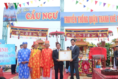 La ceremonia de entrega del título "Patrimonio cultural intangible nacional" a la fiesta "Cau Ngu" de la ciudad de Da Nang |