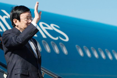 (VOVworld) – Por invitación del presidente de la Federación Rusa, Vladimir Putin, el presidente de Vietnam, Truong Tan Sang viajó este jueves a Rusia donde asistirá a la conmemoración de los 70 años de la victoria en la Gran Guerra Patria del 8 al 10 de mayo. La participación del mandatario Truong Tan Sang en esta ceremonia tiene como finalidad reafirmar el cariño invariable del pueblo vietnamita hacia el pueblo ruso pese a la volatilidad de la situación de sus respectivos países y del mundo.