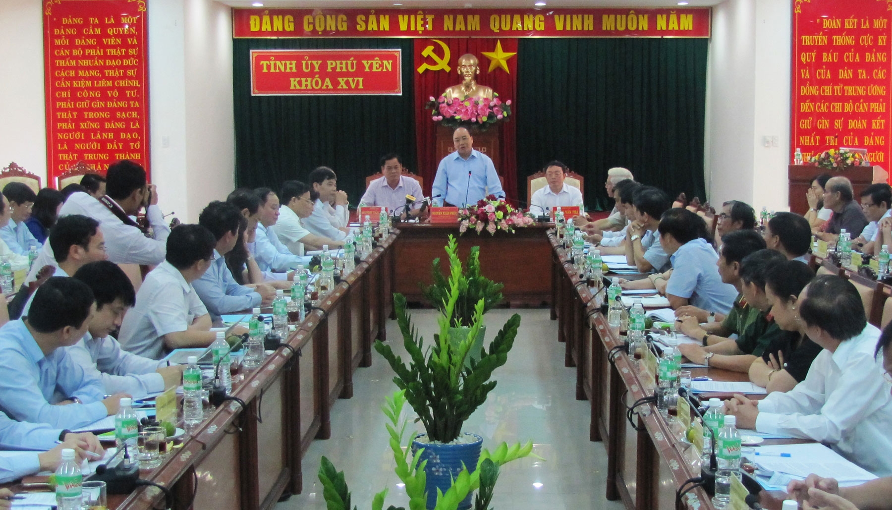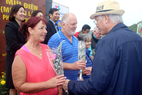 ![]() Dirigentes de la provincia de Phu Yen entregan flores a los primeros turistas participantes en El saludo a bandera nacional en la localidad