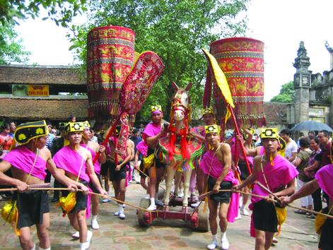 Además de las solemnes ceremonias que evocan la gloriosa historia de lucha del pueblo y homenajean a los héroes nacionales, los habitantes locales y visitantes tienen la oportunidad de participar en los desfiles y procesiones, de elefantes o palanquines, regatas de remo y competencias de barcos de dragón… Estas actividades culturales y deportivas enaltecen y reafirman la fuerza espiritual de los individuos en las relaciones colectivas y comunitarias. De la misma manera, las peleas de gallos, búfalos, aves y peces, o las corridas de toros y elefantes, fascinan a todos los concurrentes. Un ejemplo de ello es la fiesta de peleas de búfalo en Do Son, Hai Phong, que atrae cada año a muchos campesinos y pescadores de esa zona costera y de otras localidades.