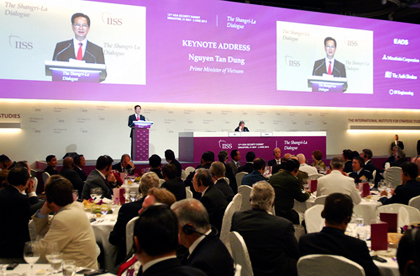 Cabe destacar que el Diálogo Shangri-la, un foro sobre la seguridad y la defensa de la región de Asia Pacífico, ha sido foco de atención mundial, ya que se trata de un evento político de suma importancia. Aunque no es el único fórum sobre este tema, ejerce influencias relevantes en el ámbito internacional. Sin declaraciones conjuntas, obligación jurídica y acuerdo, Shangri-la es un foro abierto donde los países participantes pueden dialogar y construir un ambiente de confianza en materia de seguridad. En una región cuya estructura política tiene numerosos riesgos de inestabilidad, este diálogo es un canal importante y práctico para el desarrollo de las negociaciones sobre el tema. Por eso, la presencia del primer ministro de Vietnam, Nguyen Tan Dung, en este encuentro regional insta a la construcción de una zona de confianza estratégica en Asia Pacífico. Este asunto centró inmediatamente la atención mundial. El especialista en asuntos del sudeste asiático y viceeditor general dela revista Current Sotheast Asia Affairs, David Camroux, estimó: “Este es un gesto simbólico, ya que todo el mundo sabe que Indonesia es el país de mayor importancia en la Asociación de Naciones del Sudeste Asiático. Por lo tanto, el hecho de que el primer ministro de Vietnam actuara como presentador oficial en el Diálogo Shangri-la destaca la posición principal de esta nación indochina en cuanto a los asuntos geopolíticos de la región”.