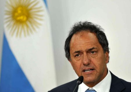 ![]() El candidato del partido gobernante Frente para la Victoria (FPV), Daniel Scioli |