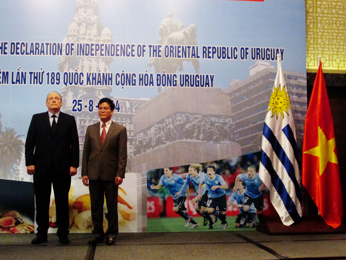 (VOVworld) – El aniversario 189 de la Declaración de la Independencia de la República Oriental del Uruguay se celebró el 25 de agosto en Hanoi con una recepción en la que el vicecanciller de Vietnam Ha Kim Ngoc afirmó que al enaltecer sus rasgos culturales y ventajas en agricultura, ganadería, servicio y tecnología, el pueblo uruguayo continúa cosechando nuevos frutos en el desarrollo nacional. Apreció también el reconocimiento de Uruguay a la economía de mercado de Vietnam en noviembre de 2013 y los documentos de cooperación bilateral firmados por diferentes sectores de ambas partes, entre ellos, el Acuerdo Marco de Comercio e Inversión (TIFA), y Convenios de Doble Imposición y contra el Fraude Fiscal.