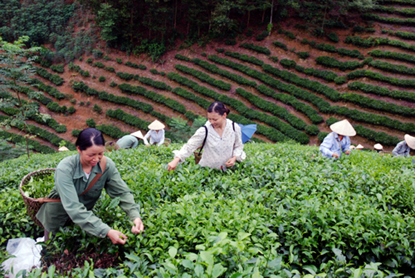 ![]() Habitantes de la comuna Tan Trao cosechan té