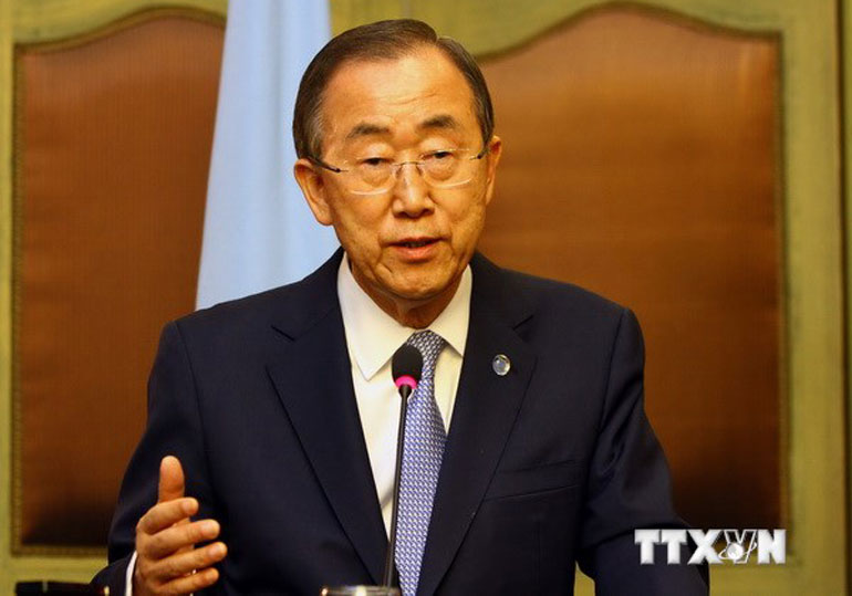 Afirmó que la ONU rechazó categóricamente los ataques con cohetes e instó a ponerle fin. Manifestó consternación con los lanzamientos de misiles por parte de la organización islamista Hamas de Palestina contra el territorio israelí e instó a Tel Aviv a mantener compostura en medio de las bajas en Franja de Gaza superiores a 600 víctimas, en su mayoría mujeres y niños. Además, el secretario general de la ONU pidió a Israel analizar directamente el quid de la cuestión y acelerar la solución de los problemas relacionados con la ocupación territorial de Palestina.