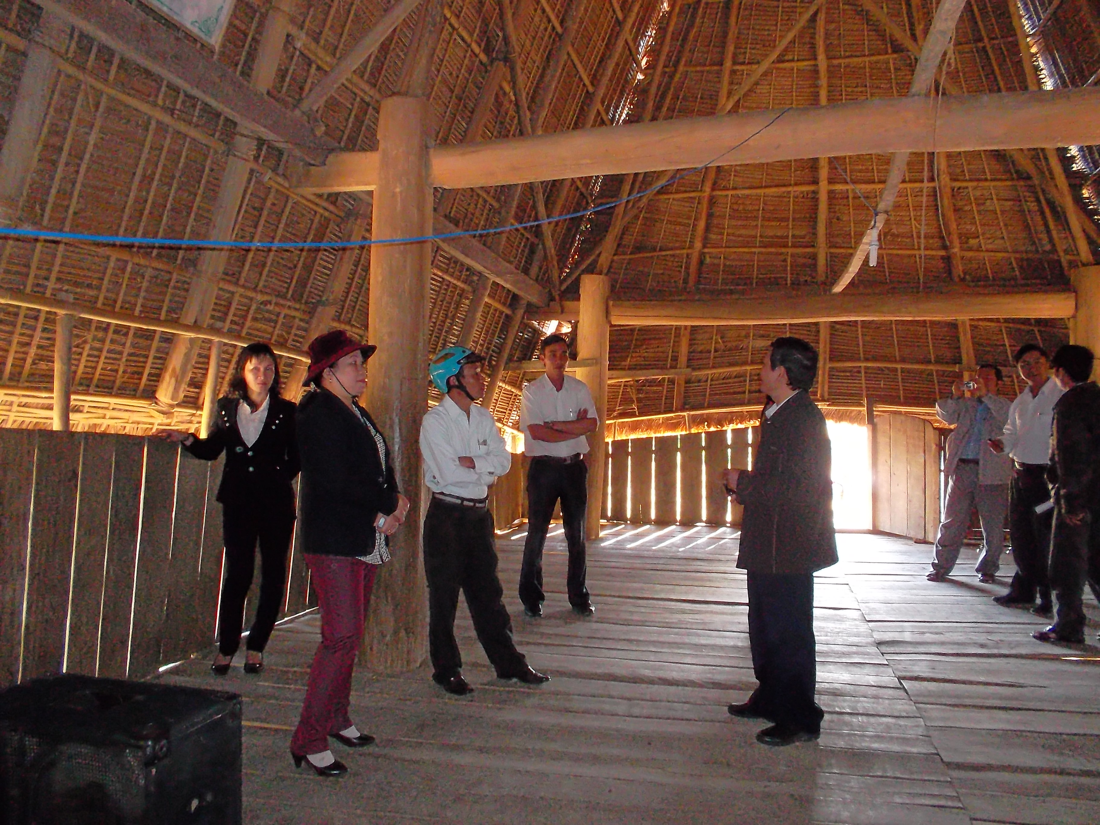 La casa comunal es el lugar donde se guardan objetos sacros del poblado y solo los varones pueden dormir aquí, ya que los Bana consideran que en la Nha Rong se discuten trabajos importantes de la aldea, los patriarcas transmiten experiencias y enseñan a sus descendientes sobre la tradición cultural. Por eso, al llegar a esta casa los visitantes comprenden las costumbres y cultura de estos étnicos. Nguyen Hoang Tan, un viajero, opinó: “Esta es la primera vez que entro en la Nha Rong y veo que todos los objetos como tambores y batintines son muy raros y atractivos. Quiero indagar más sobre esta cultura y tengo la sensación de que las mesas, sillas y otros adornos de la casa crean un ambiente muy cálido”.