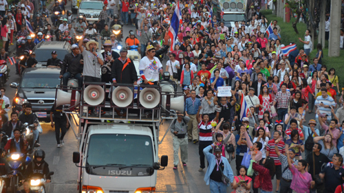 En la zona alrededor de la sede de la primera ministra interina Yingluck Shinawatra, el líder opositor Suthep Thausuban, urgió el 17 de febrero a sus partidarios a bloquearla e instalar barreras de hormigón para obstaculizar el plan gubernamental de reabrir la sede. Suthep también anunció que movilizará dos mil manifestantes para mantener permanente el bloqueo en esa área.