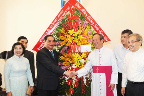 Los compatriotas católicos festejan una Navidad rebosante de alegría y felicidad. Numerosos días en vísperas de esta fiesta, esta comunidad sigue empeñada en llevar una buena vida religiosa y social, beneficiada de la atención de las diferentes instancias administrativas en todo el país. Los gobiernos locales de Dong Nai, Ninh Binh, Ha Noi, Ciudad Ho Chi Minh, Hue, Soc Trang y Ben Tre junto con representantes del Comité Nacional de Unidad Católica y del Frente de la Patria han realizado numerosas visitas para felicitar a los dignatarios y feligreses católicos y obsequiarles por el festejo anual más importante de la cristiandad. La Navidad ahora se ha convertido en un festejo rebosante de alegría y felicidad para no solo los católicos sino también para los demás conciudadanos.