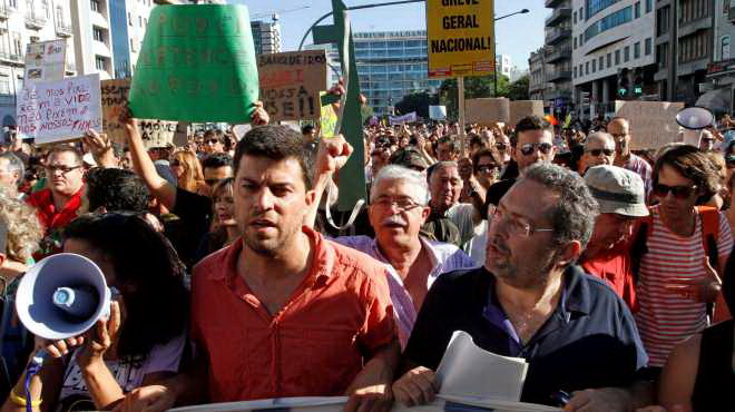 En Portugal, las manifestaciones se extienden desde la capital Lisboa a otras ciudades, con la participación de cientos de miles de personas, con enfrentamientos entre manifestantes y policías afuera de la sede del Parlamento. La Oficina del Fondo Monetario Internacional fue blanco de ataques de los indignados. La causa de esta inconformidad social también proviene de las medidas de austeridad que aplica el gobierno luso para recibir un crédito de 110 mil millones de dólares. A consecuencia de estas disposiciones, los trabajadores deberán pagar más por los servicios públicos. La opinión pública nacional de Portugal critica que los recortes azotan principalmente a los estratos sociales bajos, y nunca a la clase pudiente.