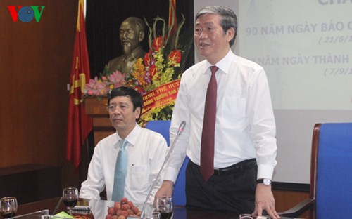 En la jornada, el jefe del Departamento de Propaganda y Educación del Comité Central del Partido Comunista, Dinh The Huynh, visitó y felicitó a la Unión Nacional de Periodistas, la Agencia Vietnamita de Noticias, el diario Nhan Dan (El Pueblo), la Radio la Voz de Vietnam y los periódicos Cong An Nhan Dan (Policía del Pueblo) y Quan Doi Nhan Dan (Ejército del Pueblo). En su visita a la Radio Nacional, Dinh The Huynh dijo: “Espero que la Voz de Vietnam ponga en alto su gloriosa tradición y experiencias acumuladas durante los últimos 70 años desde su nacimiento. Especialmente en los últimos años, con un contingente numeroso y bases materiales modernizadas, la Voz de Vietnam ha cumplido mejor con sus tareas de radiodifusión, imprimiendo su nombre en la prensa oral, además de diversificar la prensa escrita y la teledifusión, elevando su calidad para convertirse en un potente complejo de comunicación multimedia.”