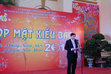 (VOVworld) – El Comité Central del Frente de la Patria de Da Nang, en coordinación con la Asociación de Contacto con los vietnamitas en ultramar en la misma ciudad, efectuó una reunión para más de 150 compatriotas en el extranjero que se encuentran en el país para disfrutar del Año Nuevo Lunar 2016. En la reunión, las autoridades de Da Nang presentaron los resultados del desarrollo socioeconómico local en 2015, con vistas al 2016 y los venideros años, al mismo tiempo recibieron las contribuciones de los connacionales al desarrollo de la ciudad.
