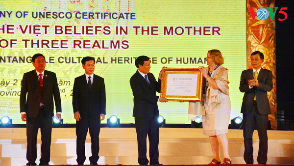 (VOVworld) – Vietnam recibió el certificado de la Organización de la ONU para la Educación, la Ciencia y la Cultura (Unesco) que reconoce las prácticas del culto a las Diosas Madres como un patrimonio cultural intangible de la humanidad. Ese acto de veneración es un orgullo del pueblo indochino al resaltar uno de sus acervos culturales.