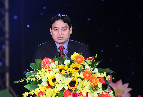 El miembro del Comité Central del Partido del duodécimo mandato y primer secretario del Comité Central de la Juventud Comunista Ho Chi Minh, Nguyen Dac Vinh en el acto