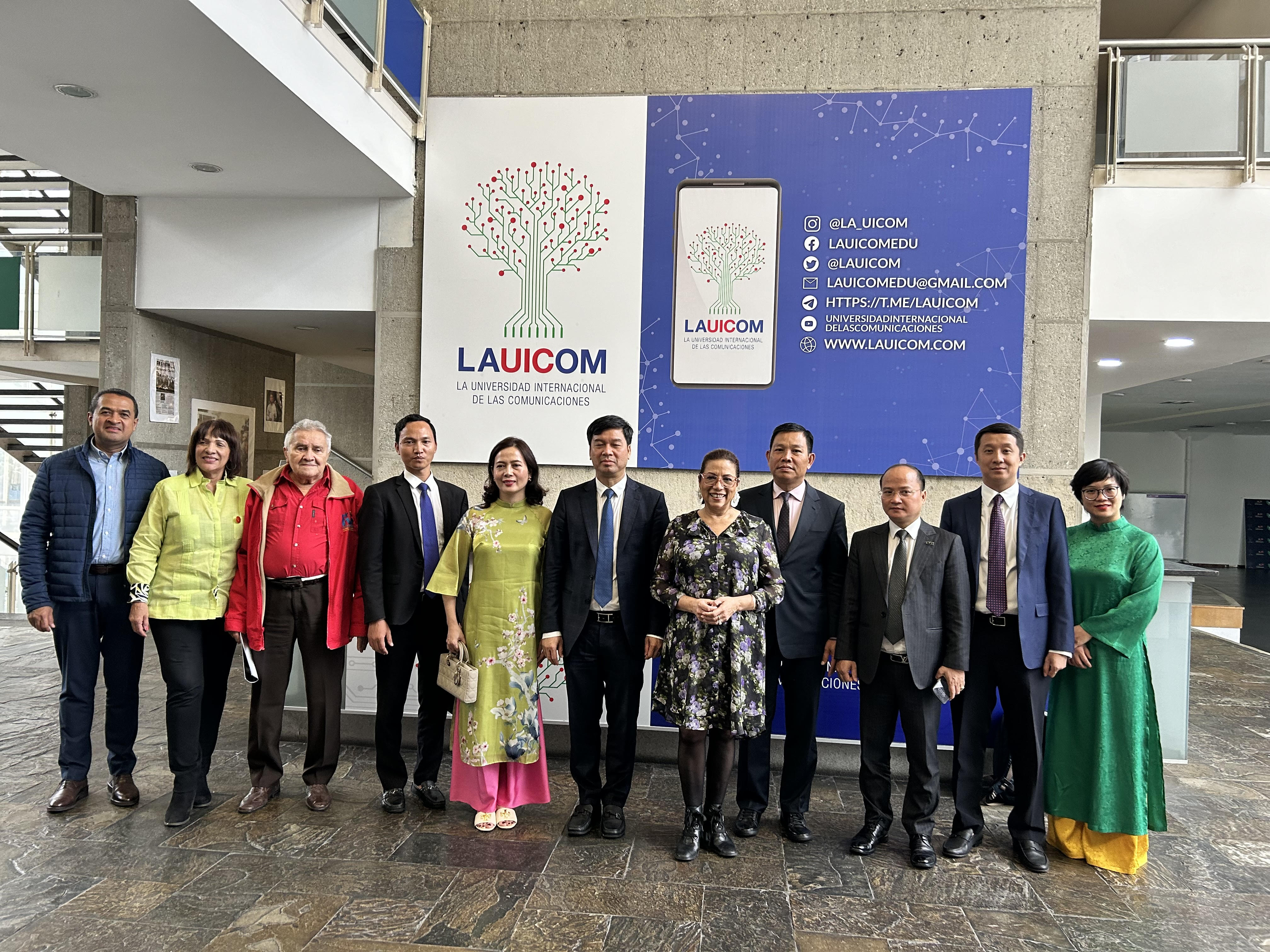 Entretanto, la rectora de LAUICOM, Tania Díaz, hizo una presentación a la delegación de la VOV sobre dicho centro de formación en periodismo para los niveles universitario y de posgrado, establecido en el año 2019. LAUICOM asume dos tareas importantes: investigar y enseñar sobre los medios modernos y fomentar la ideología para construir una prensa revolucionaria cada vez más fuerte en la batalla mediática contra las fuerzas hostiles, el imperialismo y el neofascismo, señaló.
