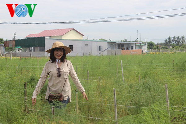La empresaria Trinh Thuy Lan visita el huerto de espárrago común en la aldea de Tuan Tu, Ninh Thuan (Foto:VOV) |