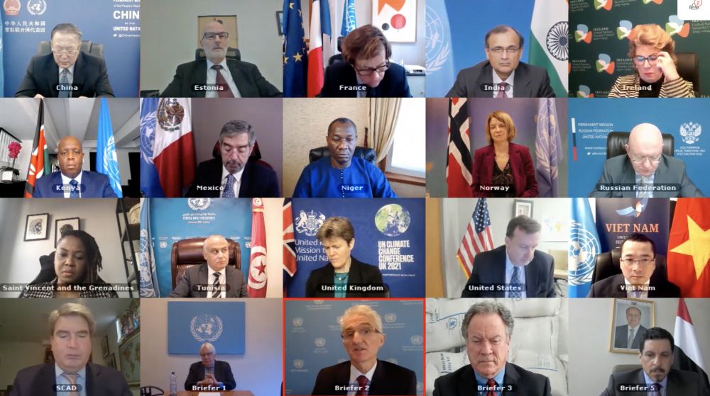 Durante una reunión del Consejo de Seguridad de la ONU sobre la situación en Yemen y las actividades humanitarias en Etiopía efectuada el 15 de abril en formato digital, el diplomático exhortó a las partes concernientes a poner fin a las acciones hostiles, reanudar pronto las negociaciones, no atacar la infraestructura civil ni obstaculizar la asistencia humanitaria, y proteger a los grupos vulnerables.