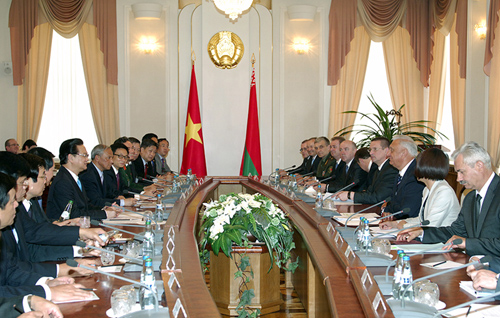 La República de Bielorrusia es la última etapa de la gira de Nguyen Tan Dung. Aunque solo se desarrolla durante 3 días (del l5 al l7 de mayo), esta visita abre un importante capítulo en las relaciones tradicionales, incentivando la colaboración bilateral en distintos campos, sobre todo concretizando el Programa de colaboración económica Vietnam-Bielorrusia en el período 20l3-20l5, con el objetivo de aumentar el intercambio comercial bilateral a mil millones de dólares e impulsar el proceso de negociaciones del Tratado de Libre Comercio entre Vietnam y la Alianza Aduanera Rusia-Bielorrusia-Kazajstán.