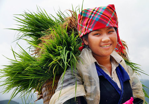 ![]() Muchacha de la etnia Mong en la cosecha de arroz