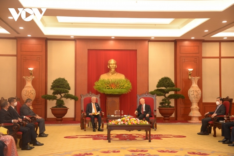 El encuentro entre el secretario general del Partido Comunista de Vietnam, Nguyen Phu Trong, y el primer ministro malasio Dato’ Sri Ismail Sabri bin Yaakob. |