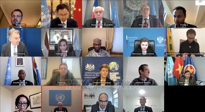 El embajador Dang Dinh Quy (c), jefe de la misión vietnamita permanente ante la ONU, en una rueda de prensa internacional que dio inicio al mandato de Vietnam en el Consejo de Seguridad, 2020-2021 (Foto: VNA) |