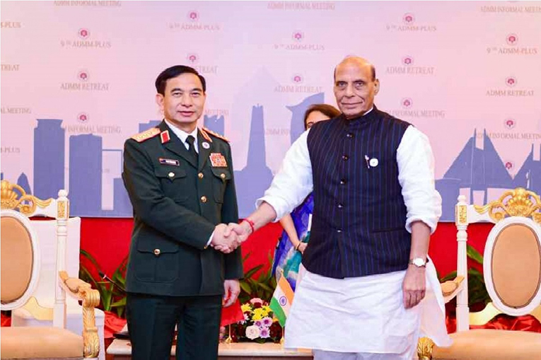 Phan Van Giang y el ministro de Defensa indio, Shri Rajnath Singh. (Foto: Twitter) |