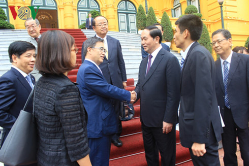 ![]() El presidente vietnamita, Tran Dai Quang recibe al gobernador de la perfectura japonesa de Aichi, Hideaki Omura