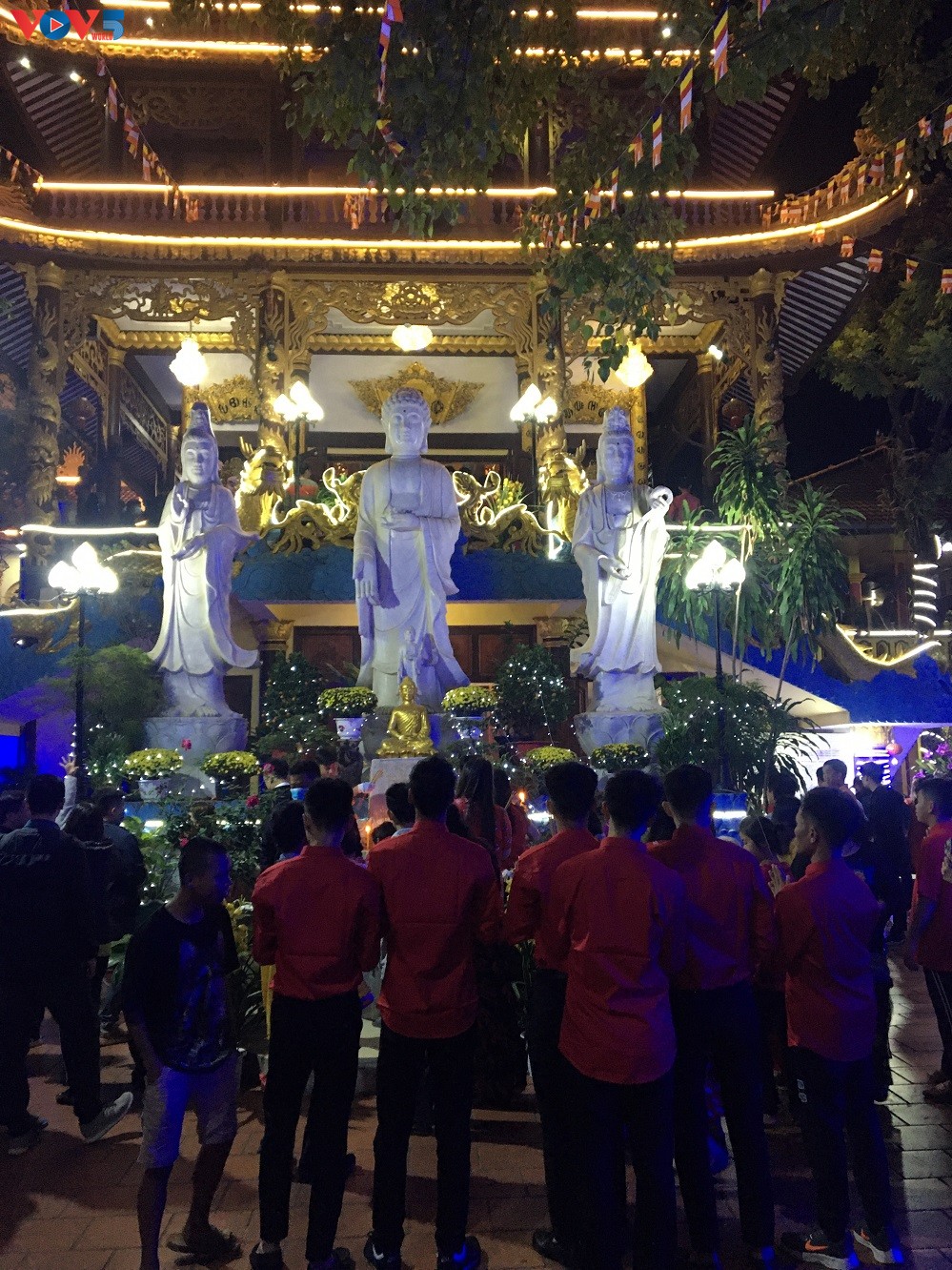 Los vietnamitas en el extranjero van a las pagodas en la Nochevieja. (Foto: VOV) |