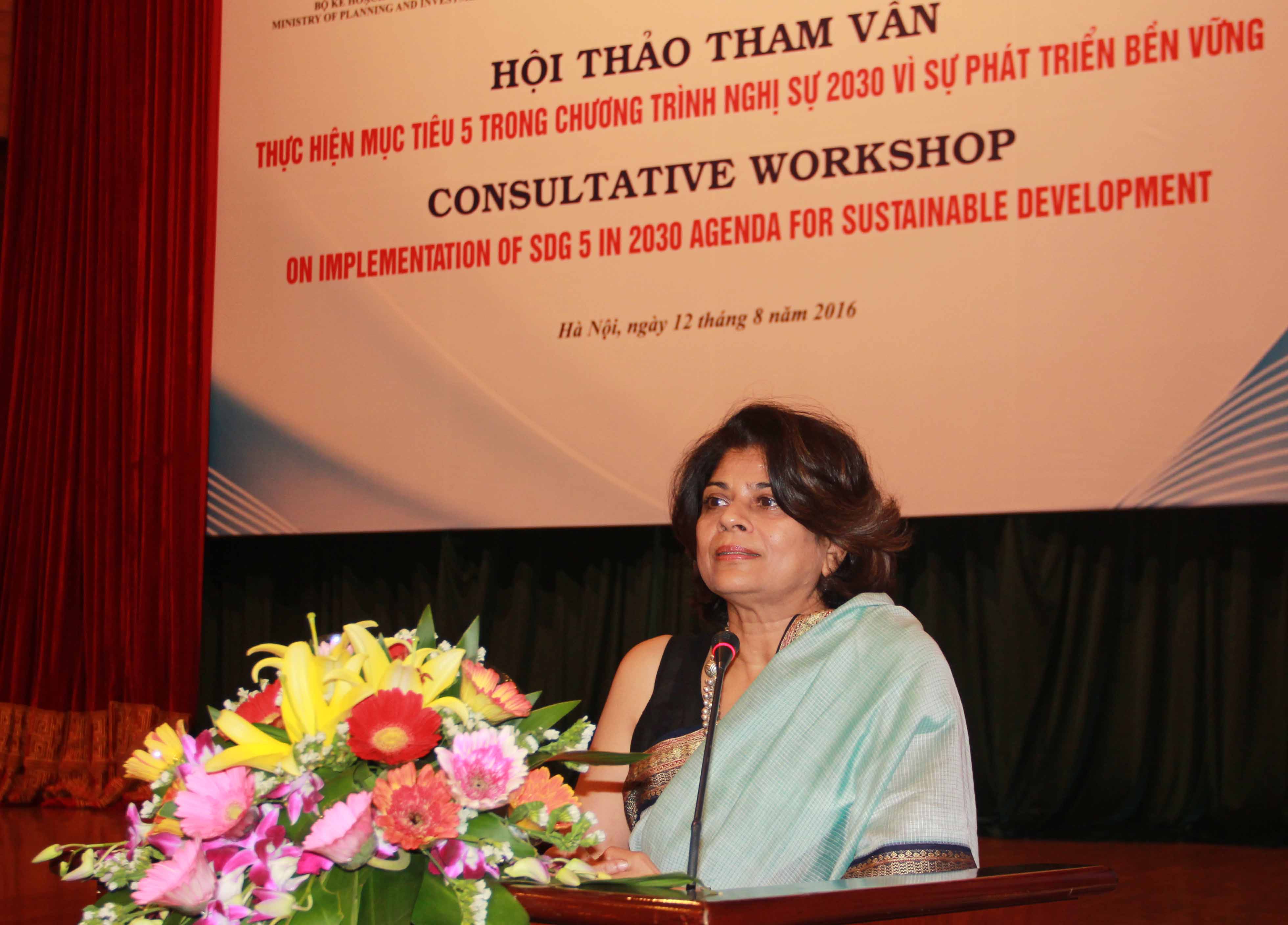 Pratibha Mehta, excoordinadora residente de las Naciones Unidas en Vietnam, en un seminario organizado en Hanoi |