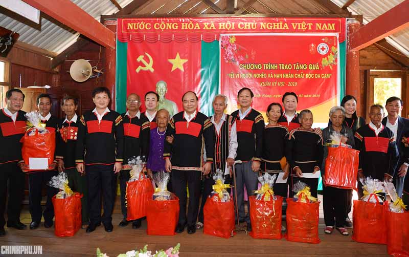 En el marco su visita de trabajo en Dak Nong, el primer ministro Nguyen Xuan Phuc visitó y entregó presentes del Tet 2019 (Año Nuevo Lunar del Cerdo) a compatriotas del distrito de Cu Jut.