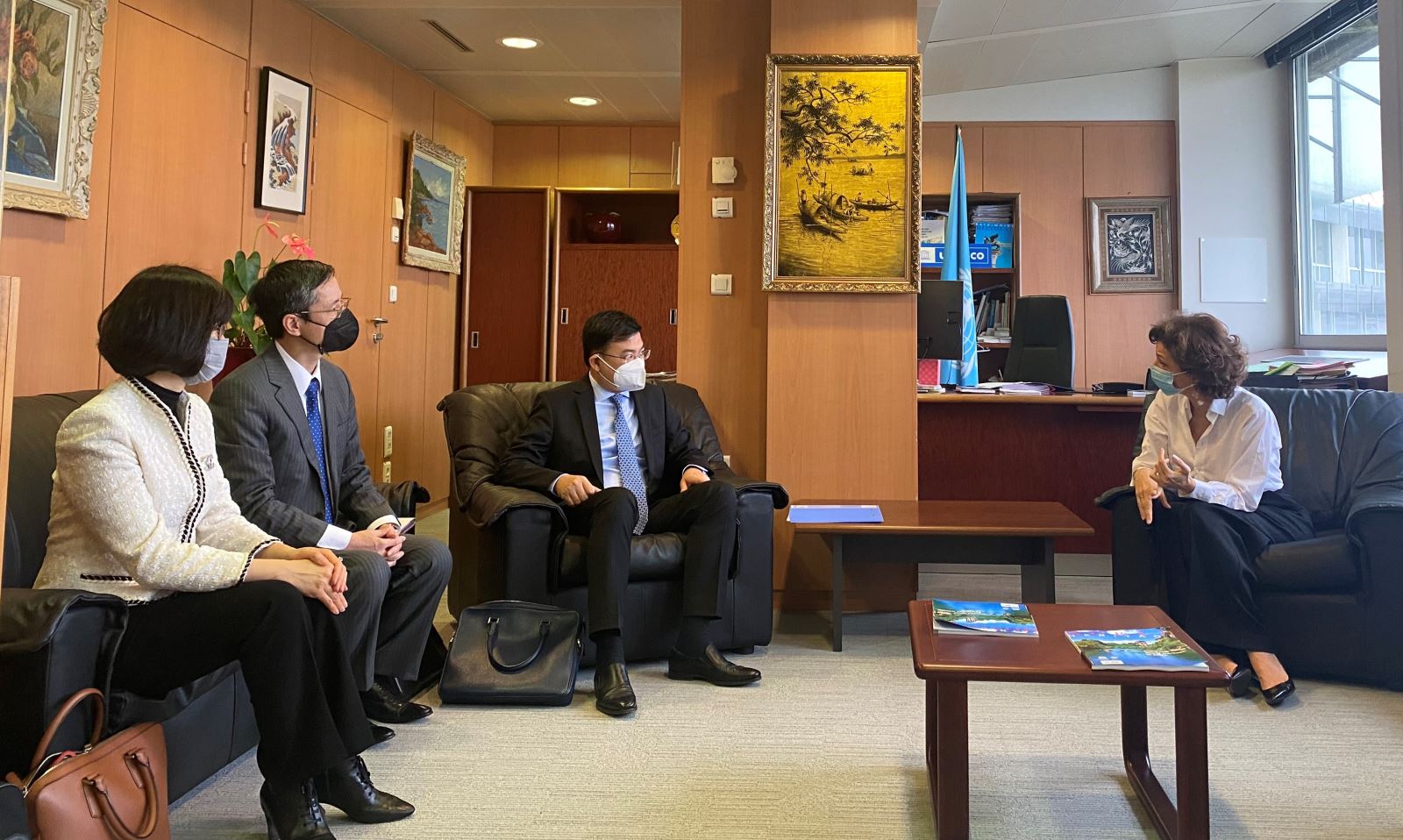 En la ocasión, Quang Hieu se reunió con el presidente de la Asamblea General de la UNESCO y representantes de los Estados miembros para llamarlos a apoyar su candidatura al Comité Intergubernamental de la Convención para la Salvaguardia del Patrimonio Cultural Inmaterial, mandato 2022-2026. También mantuvo un encuentro con la directora general Audrey Azoulay, y con varios altos funcionarios de la organización para debatir los proyectos que se implementarán de 2021 a 2025, de conformidad con el Memorándum de Cooperación entre Vietnam y la UNESCO.
