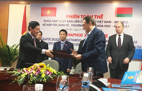 Un acto de firma de documentos de cooperación entre Vietnam y Belarús en 2016 (Foto: Hanoimoi.com.vn) |