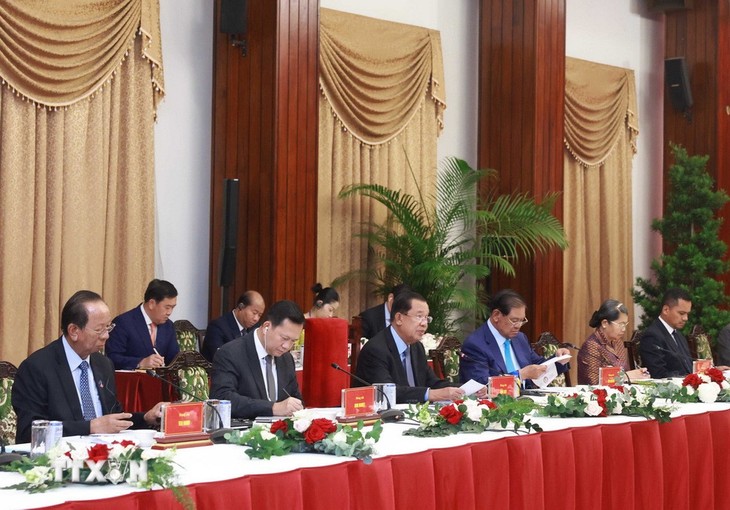 Durante la conferencia, Pham Minh Chinh y Hun Manet lograron un consenso sobre las principales evaluaciones y orientaciones planteadas por el Secretario General del Partido Comunista de Vietnam, To Lam, y el líder del CPP, Hun Sen, acerca de la importancia de fortalecer los vínculos entre los dos partidos y los dos países para que sean cada vez más profundos e integrales.