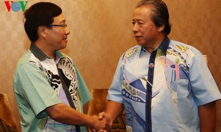 (VOVworld) – El vicepremier y ministro de Asuntos Exteriores de Vietnam, Pham Binh Minh, se reunió el 19 de noviembre en Kuala Lumpur con el ministro de Asuntos Exteriores de Malasia, Anifah Aman, en ocasión de la 27 Cumbre de ASEAN que tendrá lugar en ese país.