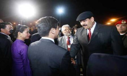 ![]() Dirigentes vietnamitas dan la bienvenida al presidente Nicolás Maduro en el aeropuerto internacional de Noi Bai, Ha Noi