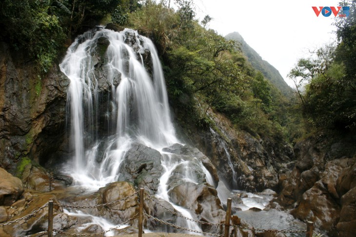 | Estas cascadas, que se asemejan a una banda de seda blanca, añaden un toque lírico a Sapa. |