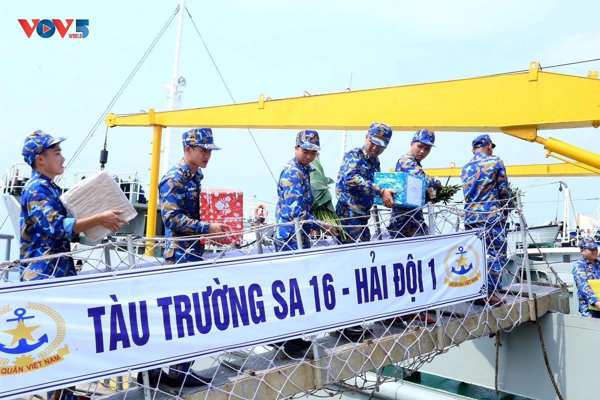 (VOVWORLD) - En ocasión de la llegada del Año Nuevo Lunar del Dragón (Tet) 2024, este 9 de enero, desde la ciudad de Vung Tau, de la provincia sureña de Ba Ria - Vung Tau, dos barcos organizados del Mando de la Región 2 de la Marina partieron para llevar a grupos de trabajo a visitar y entregar donaciones a oficiales y soldados en la plataforma DK1, buques de servicio, estación de radar 590 y agencias y fuerzas armadas estacionadas en el distrito insular de Con Dao.