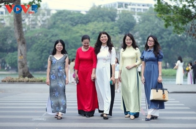 El Ao dai embellece las calles de Hanói durante los días de otoño