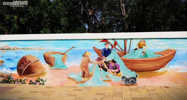 Coloridos murales del pueblo pesquero de Nhon Ly