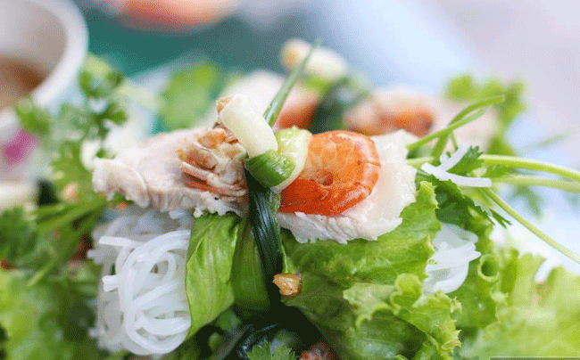 Manjares del Tet - rollo de lechuga fermentada con carne de res y camarón