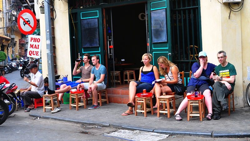 Calles antiguas de Hanoi y el tradicional hábito culinario en acera