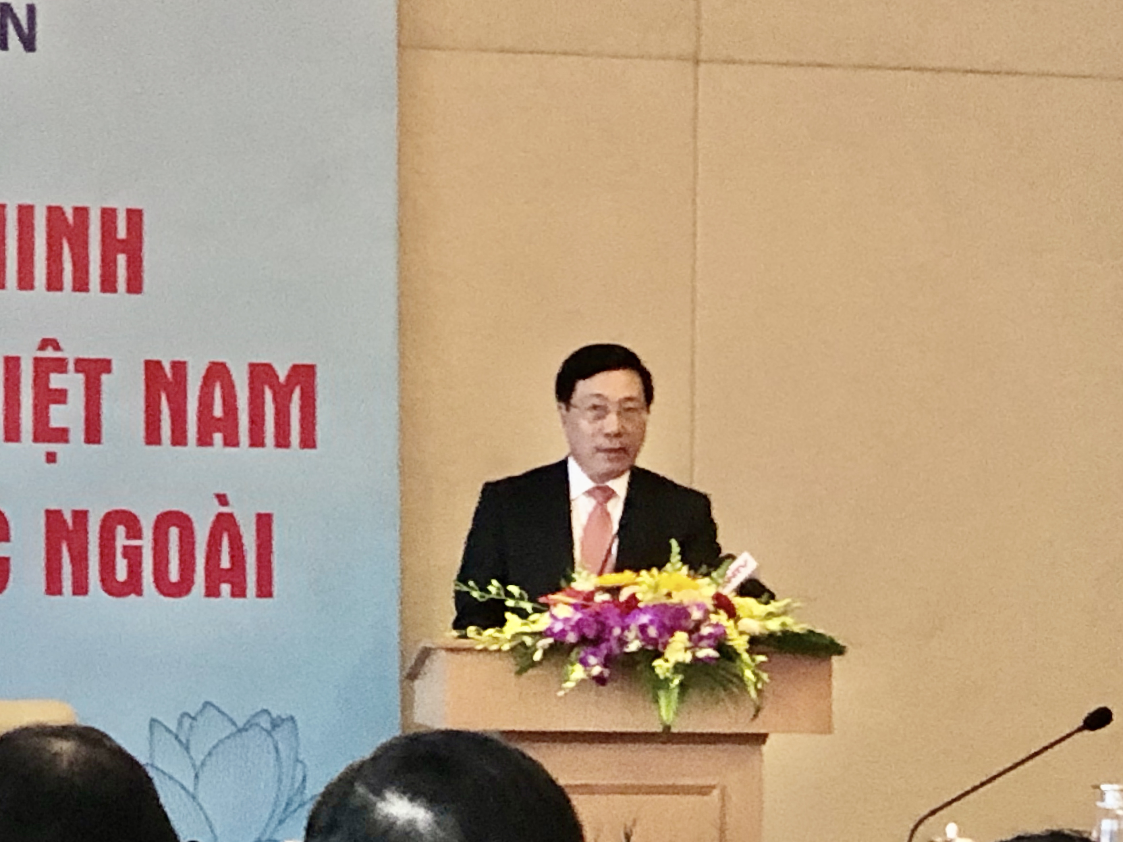 El viceprimer ministro y canciller Pham Binh Minh habla en la cita. (Foto: VOV5) |